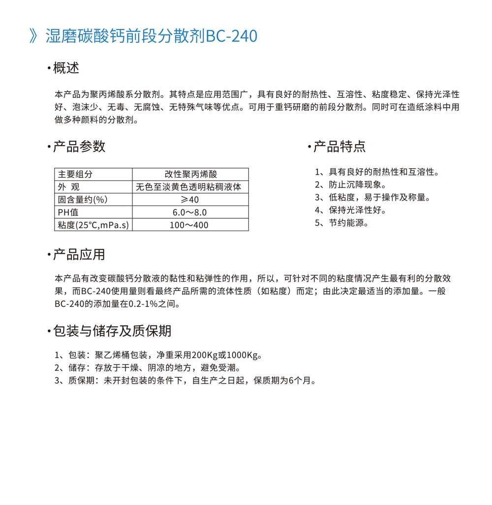 湿磨碳酸钙前段分散剂BC-240